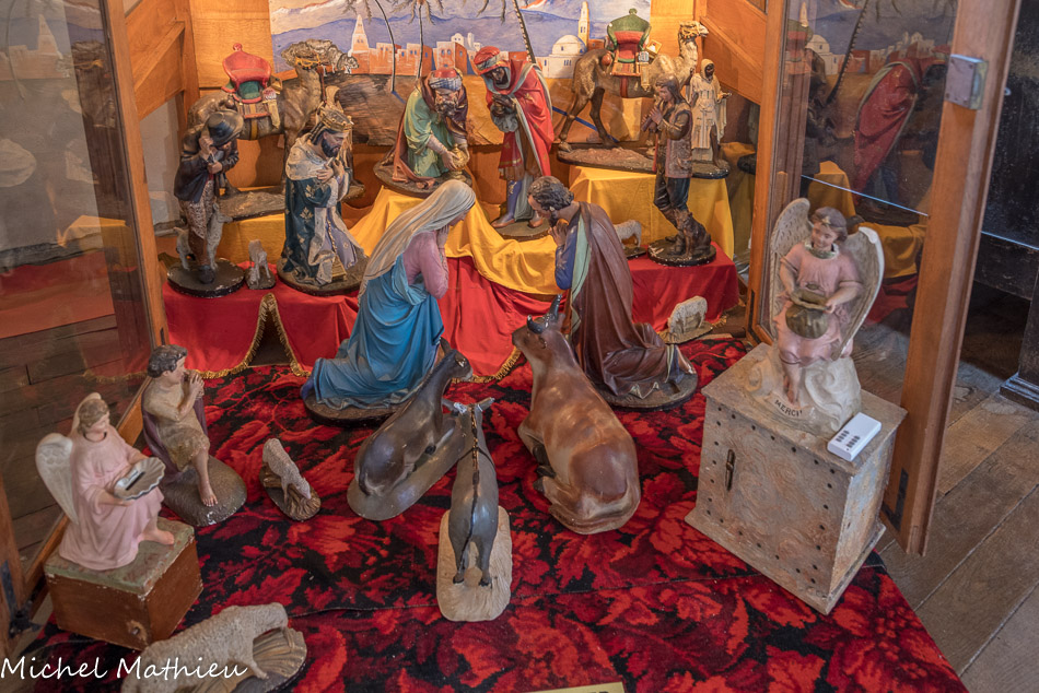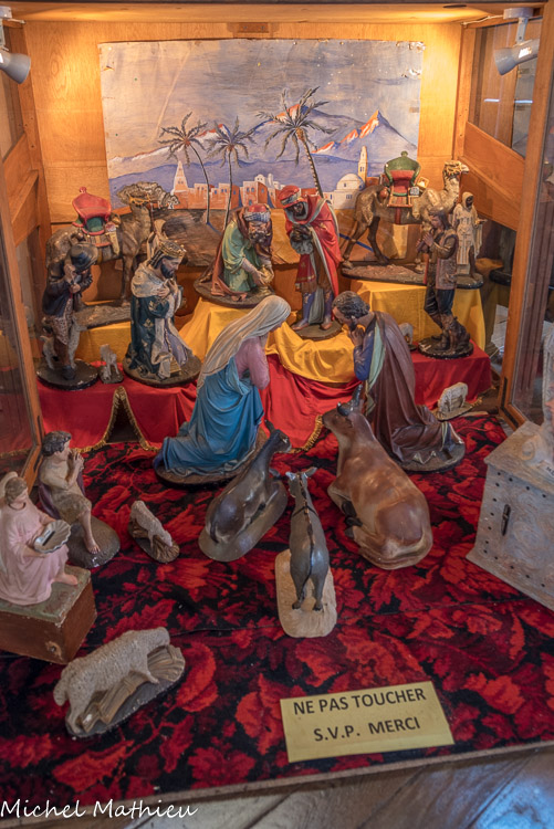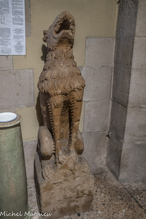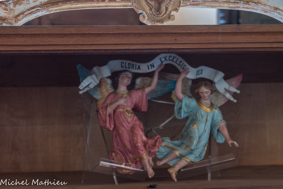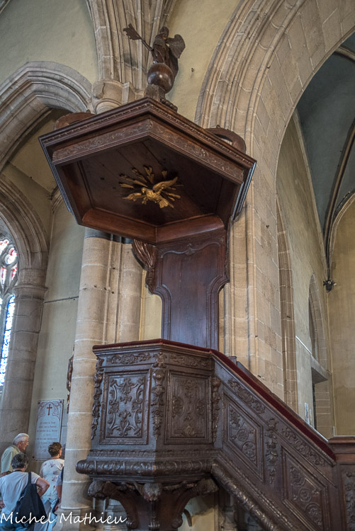 Sur le côté gauche après la chaire se trouve la chapelle des Seigneurs de Ratte avec au linteau, un saint évêque (St Crépin ?), bois polychrome.