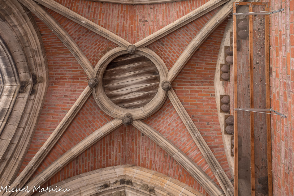 La voûte articulée sur un jeu d'arcs croisés polychromes donne l'impression d'une grande légèreté.