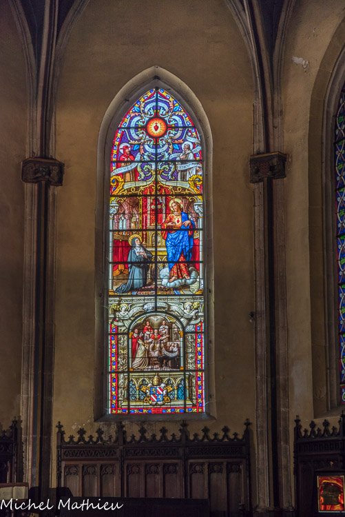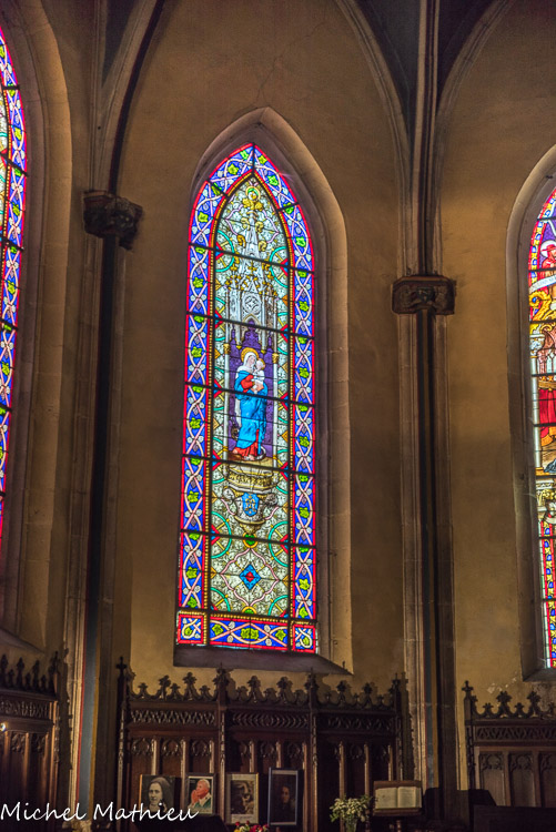Les vitraux représentent successivement sainte Thérèse d'Avila (?),