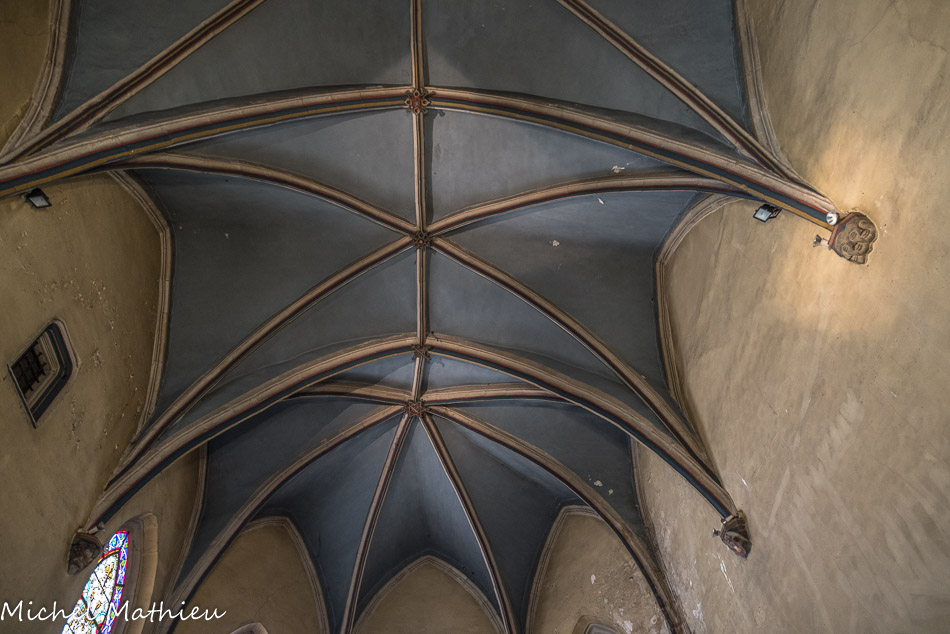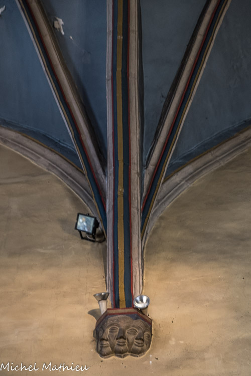 Les consoles et les chapiteaux polychromes sont sculptés pour la plupart aux armoiries de familles nobles du louhannais.