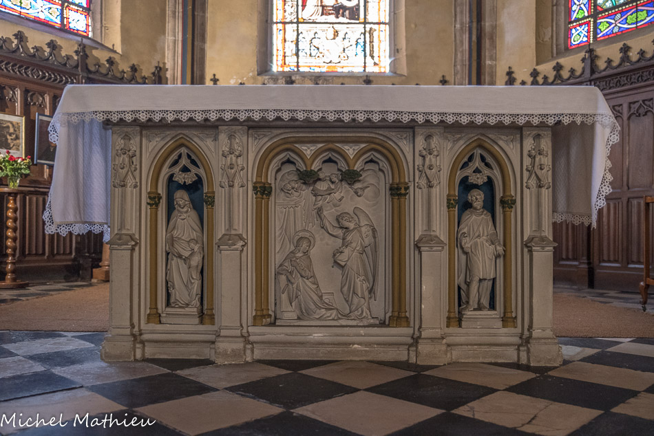 Le Saint-Sacrement est déposé dans un tabernacle moderne (œuvre du ferronnier d’art Joël Frost), situé à droite de l’autel. Il a été installé en 2012.