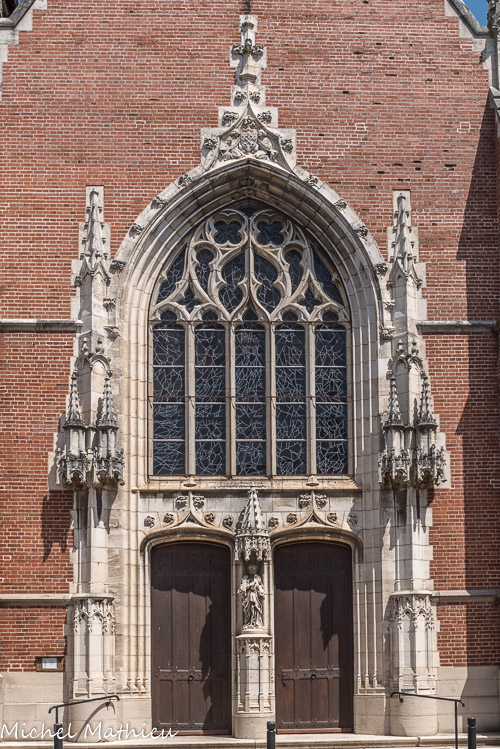 L'édifice est bâti en briques avec contreforts de pierres et de briques. La couverture en tuiles vernissées polychromes lui donne son unité.