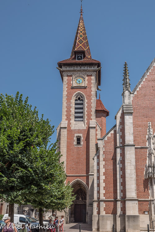 On estime qu'au début du XIVème s, l'église se présente déjà sous l'aspect de deux bâtiments accolés. Après le grand incendie de 1370 qui les a gravement endommagés, on entreprend très vite la réfection de la grande chapelle gothique Notre-Dame, dans laquelle donne l'oratoire dit « des Seigneurs de Ratte » flanqué de sa tourelle, sans doute non détruit lors de l'incendie. Puis c'est la reconstruction du chœur de l'église principale dont l'entrée est dotée d'un clocher. On prolonge le chœur par une nef où sont aménagées plusieurs chapelles latérales. Divers travaux jalonnent les siècles suivants.