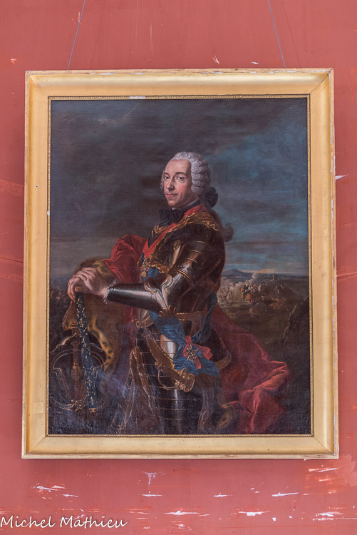A l'entrée de cette salle se trouve un magnifique poële de faïence de Nuremberg du XIXe, le plus grand conservé en Europe.