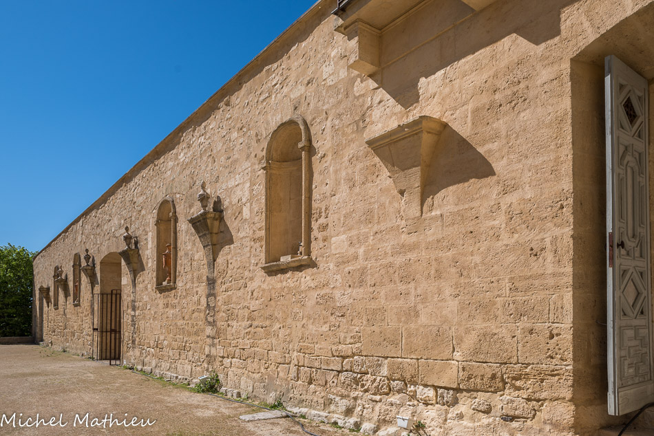 Aile est, à droite. C'est l'ancienne prison des femmes. Les lattes en bois sont en cèdre rouge. En avril 1790, l’édifice est déclaré « bien national » et est propriété de l’Etat. Le 15 janvier 1804, l’établissement devient prison et est affecté «aux condamnées à la gêne, à la détention et aux condamnées correctionnelles de sept départements» : Ardèche, Aude, Aveyron, Gard, Hérault, Lozère et Pyrénées-Orientales. Un décret impérial prescrit les travaux d’appropriation qui sont confiés à l’ingénieur des travaux publics Roussel. La partie la plus remarquable de cette entreprise concerne l’édification de la rotonde en pierre de Castries. Sa construction fut réalisée en 1810.