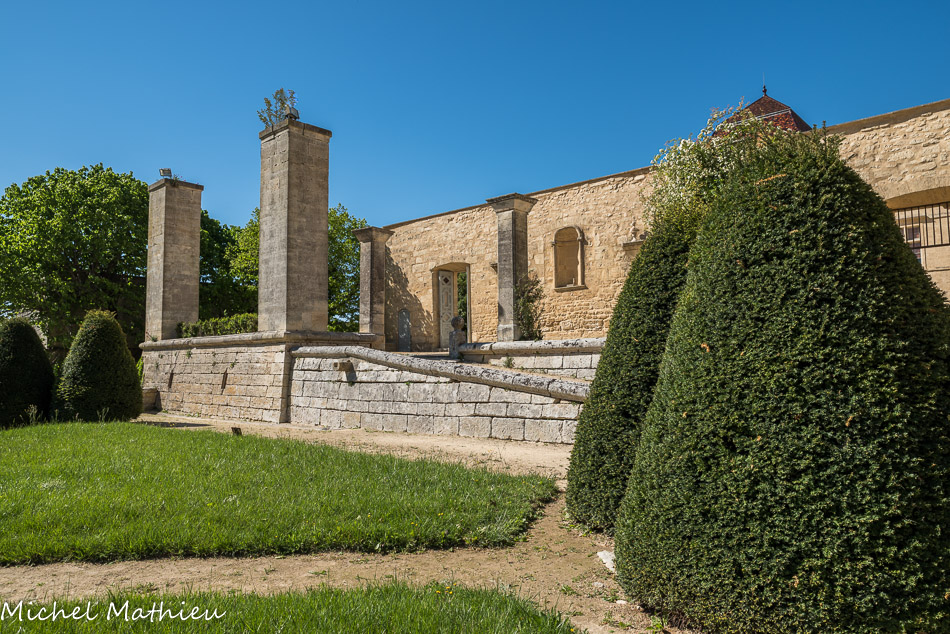 En 1670, captage de la source de Fontgrand pour amener l'eau, par un aqueduc, pour l'irrigation du jardin. L'aménagement du jardin, conçu d'après les modèles classiques, date de 1930. En contrebas de l'aile est les jardins à la française sont composés de parterres d'entrelacs de buis.