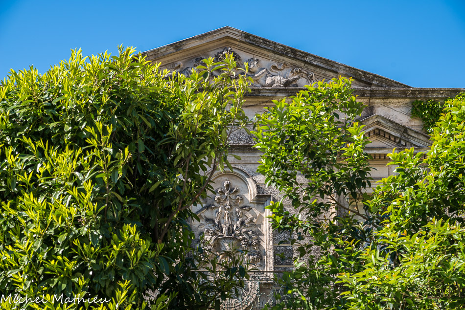 Sous un portique dorique, trône un buste de Louis XIV, en marbre de Carrare, attribué à Pierre Puget (sculpteur français né en 1620 et décédé en 1694).