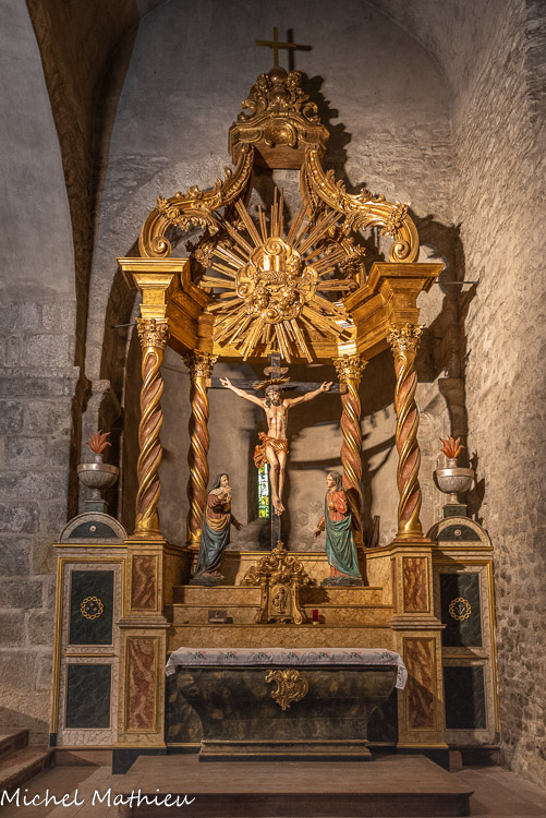 La chapelle des Sts Abdon et Sennen. L'Ascension de la Vierge et la crucifixion surmontent l'axe central.
