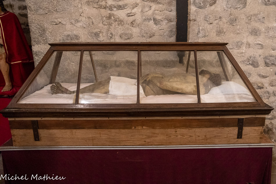 Au centre, statue de St Roch, à gauche celle de St Louis. A droite, celle de Ste Rita de Cascia.