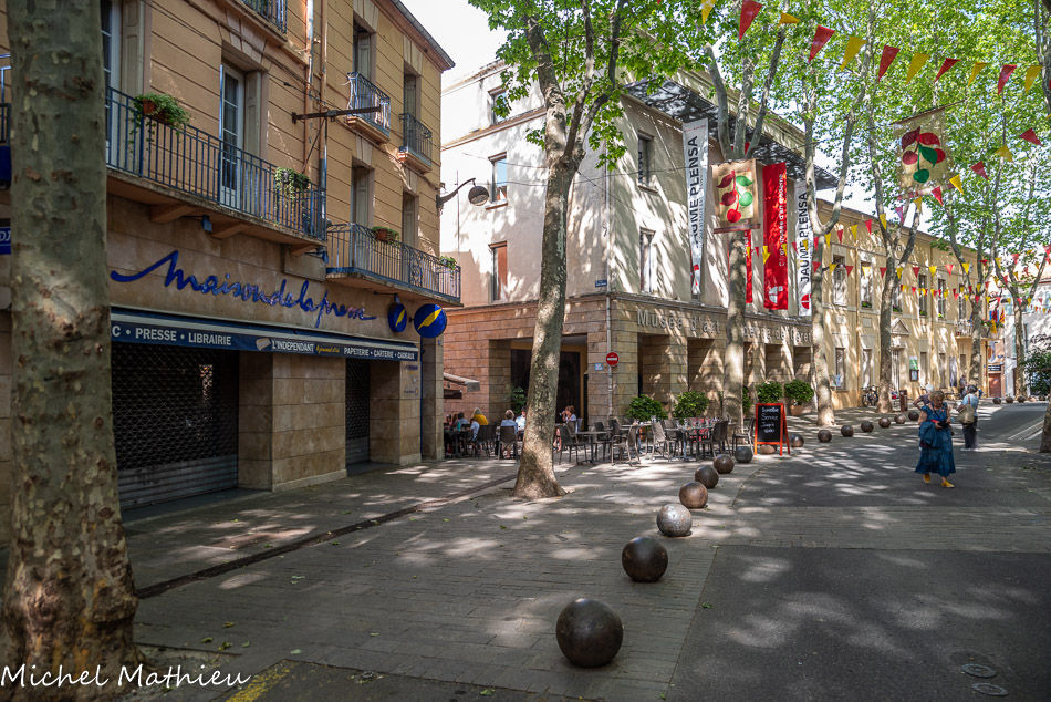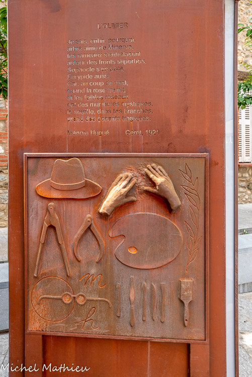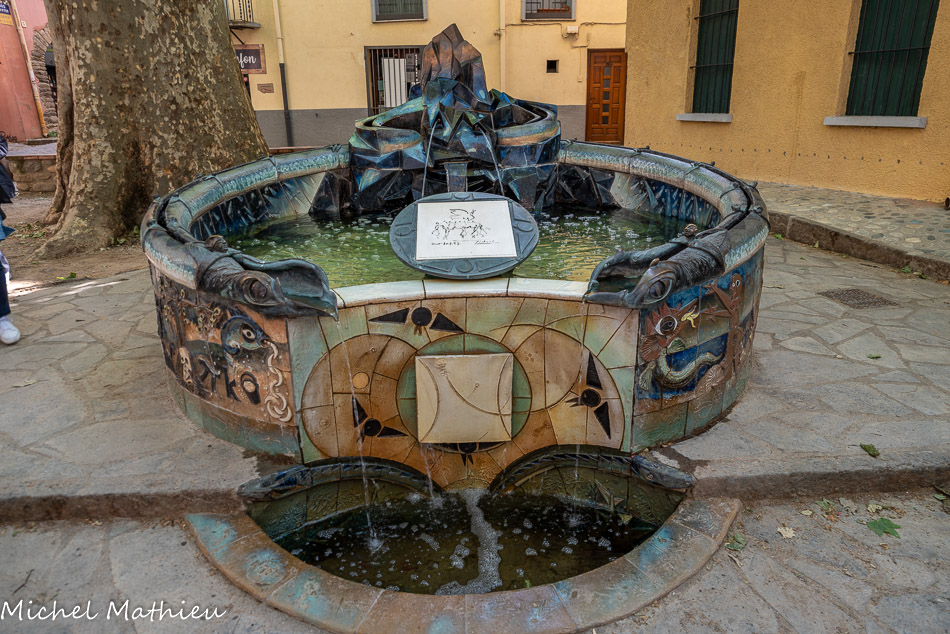 La fontaine de la Sardane de la Paix rendant hommage à Pablo Picasso et au Massif du Canigou, sans oublier l'eau l'irriguant, est réalisée en 2012 par les artistes céramistes plasticiens Juliette et Jacques Damville