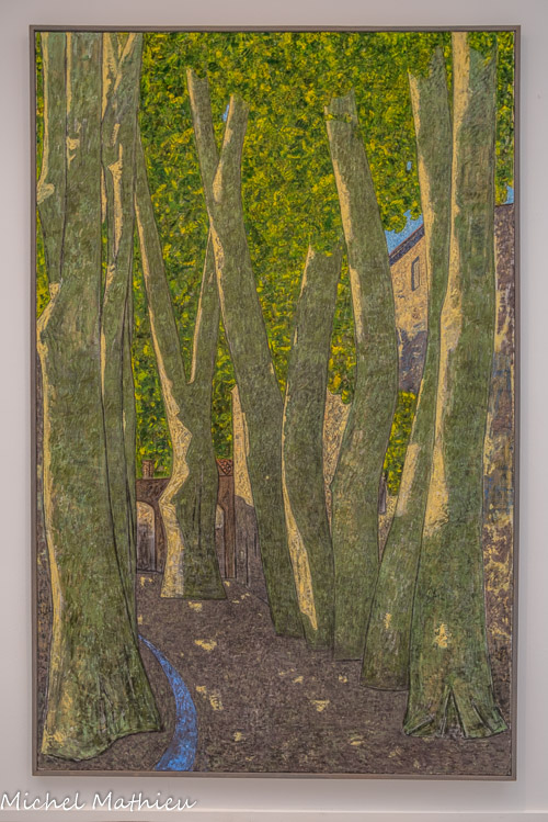 Huile sur toile. Vincent Bioulès participe au fondement de Supports/ Surfaces, qu'il quitte en 1972. Il revient alors vers des sujets plus traditionnels de la peinture, en particulier les paysages, qu'il développe entre abstraction et figuration. En 2005-2006, en résidence à Céret, il peint sur le motif l'espace et la végétation de la ville. Les platanes, le jour, témoigne de la production de cette période, ambitieuse et inventive, pleine de souffle et d'intensité, elle évoque la Joie de la couleur et le plaisir de peindre.