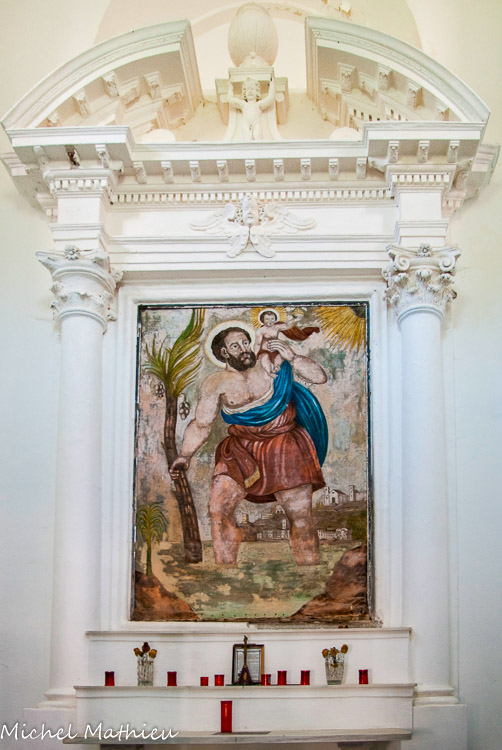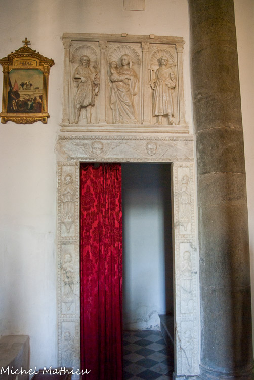 Basilique de San Giovanni Battista. La chaire de 1530 avec bas-relief représentant San Martino est de belle facture. A gauche, saint François. Saint Joachim et sainte Anne encadre saint Martin.