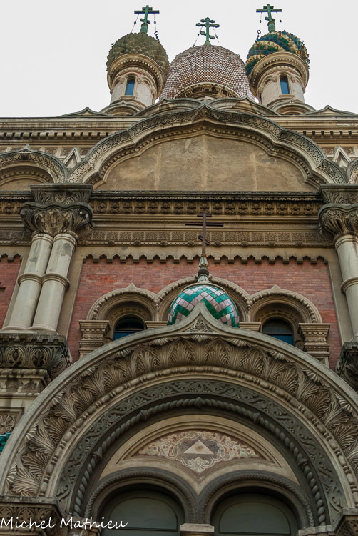 Achevée en 1906, pour la communauté russe. Grâce au chemin de fer, le tourisme devient important. Les plans sont d’un architecte russe, le même qui a construit le mausolée pour Lénine sur la place rouge, Joseph Schustev, mais elle est construite par un architecte local, qui était aussi le maire, en béton peint. Elle est dédiée à la Ste Vierge et à Jésus Sauveur.