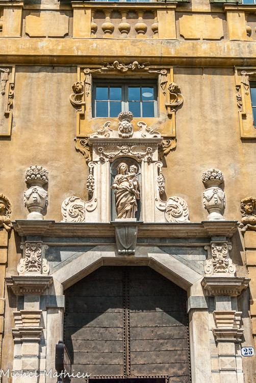 Palais Manara. Le monument se trouve dans le quartier de la rue Palma, importante artère de la vieille ville, par laquelle on accède en empruntant la porte Montà, désormais démolie, depuis la plaine du canal San Romolo. La résidence est le résultat d'un savant mélange de styles d'origine médiévaux. L'aspect actuel, uniforme, date seulement de la fin du XVème siècle et du début du XVIème siècle. Au XVIème siècle, le palais était prestigieux. En 1538 il fut la résidence du pape Paul III Farnese, lequel se rendait à Nice pour rétablir la paix entre Charles Quint et François Ier. Les décorations sur le portail et l'élégant vestibule rappellent le faste original de la demeure. C'était la demeure d'une familles des plus riches de Sanremo.