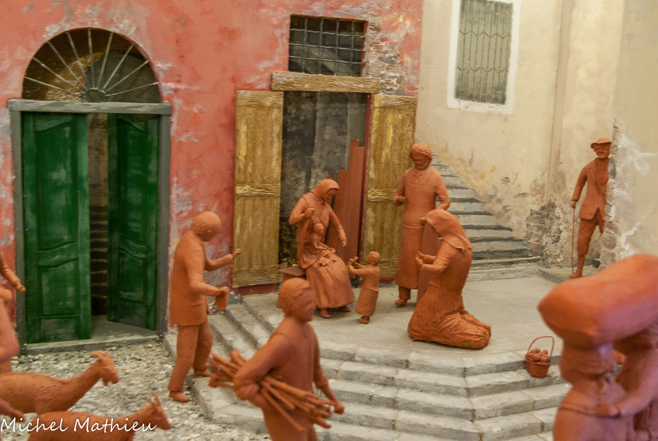 En-dessous, un groupe sculpté en bois monochrome du 1735, oeuvre du sculpteur Antonio Maria Maragliano, où sont représentés St. Joseph avec Ste. Anne et St. Joachin, parents la Vierge Marie, ainsi que de nombreux petits anges.