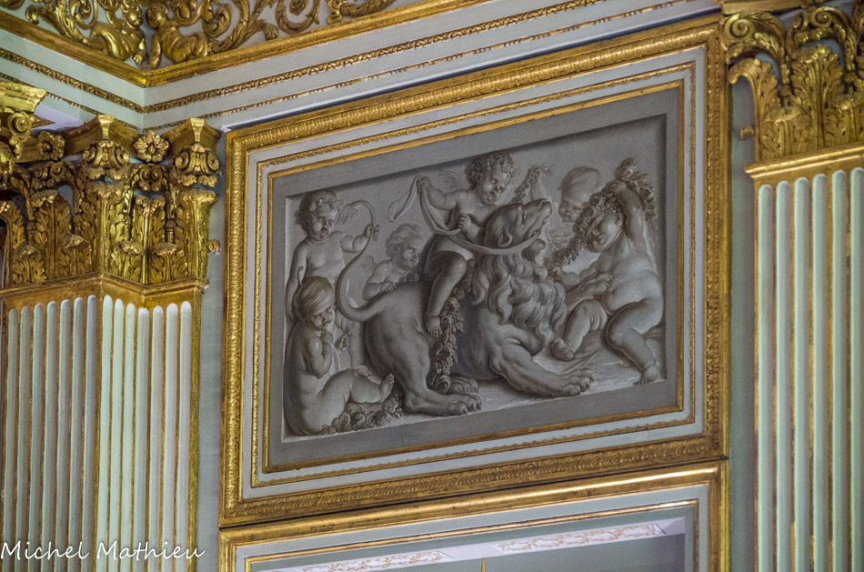 Les grisailles placées au-dessus des portes sont également de Chaix et, à la manière des bas-reliefs sculptés, montrent des putti joueurs.