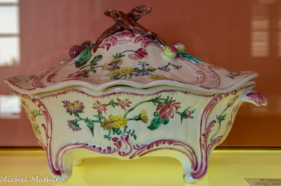 Terrine couverte. Fabrique Veuve Perrin. Faïence, décor de petit feu polychrome . Vers 1760 – 1770