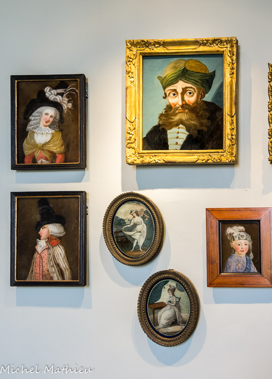 Collection de portraits sous verre.