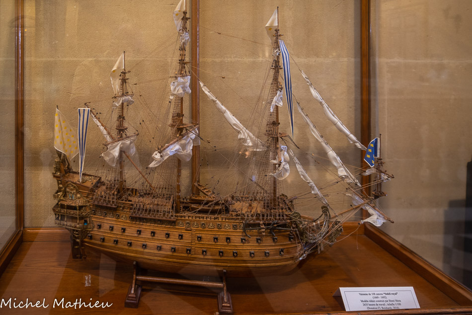Vaisseau de 108 canons “Soleil royal" (1669 - 1692). Modèle réduit construit par Henri Mora 2635 heures de travail ; échelle 1/100. (Donation Cl. Boishardy, 2016)