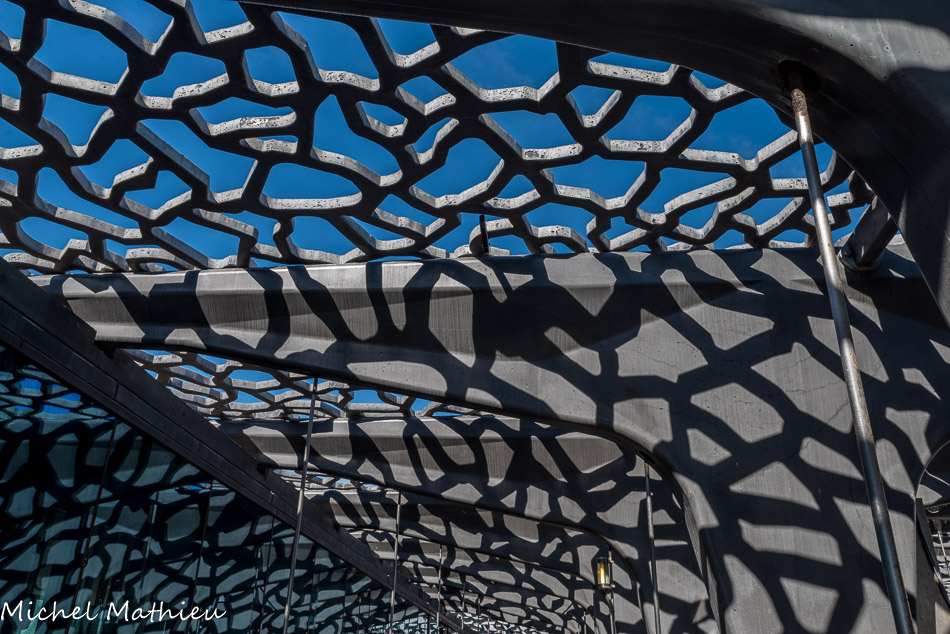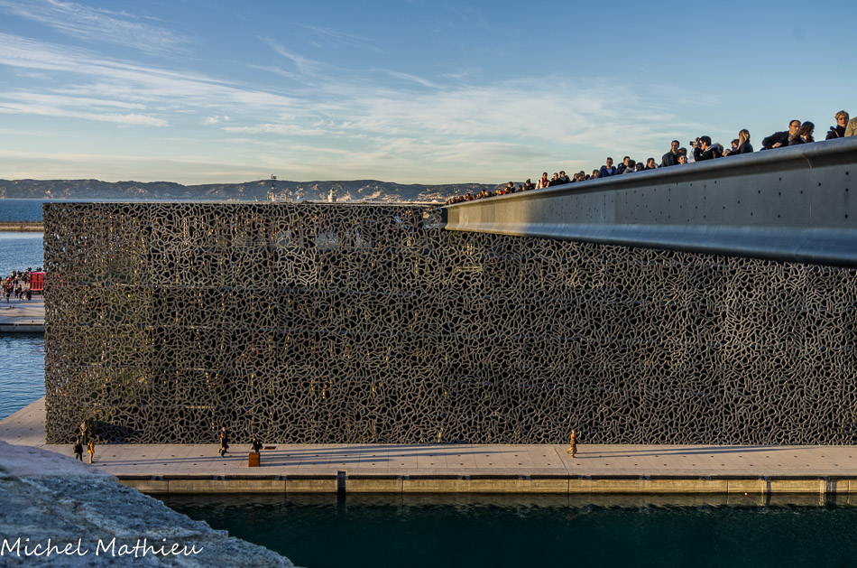 L’architecte a imaginé le futur musée dans un matériau inspiré par « le paysage minéral de Marseille et les pierres du Fort Saint-Jean » : le béton. Pas un béton ordinaire, un béton « exceptionnel, à la pointe des dernières recherches scientifiques » qui lui permet de faire… de la dentelle ! Sur le môle va donc s’élever un cube minéral bordé de douves, enserré par une résille de béton fibré et des façades brise-vent qui laisseront passer la lumière, l’air et les odeurs d’iode.
