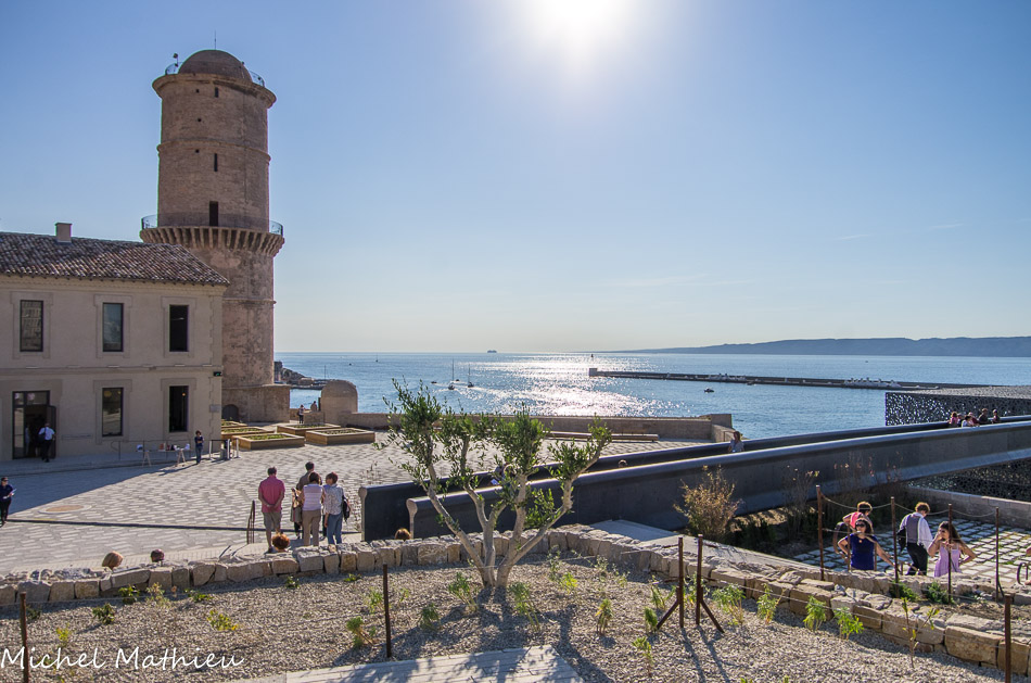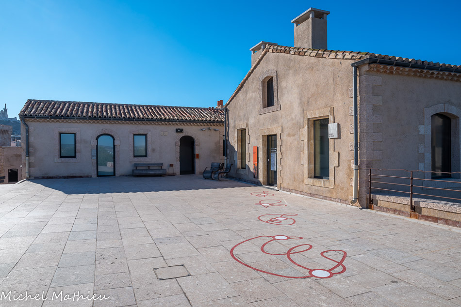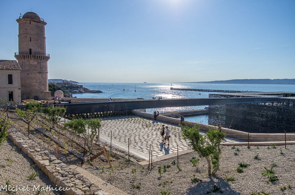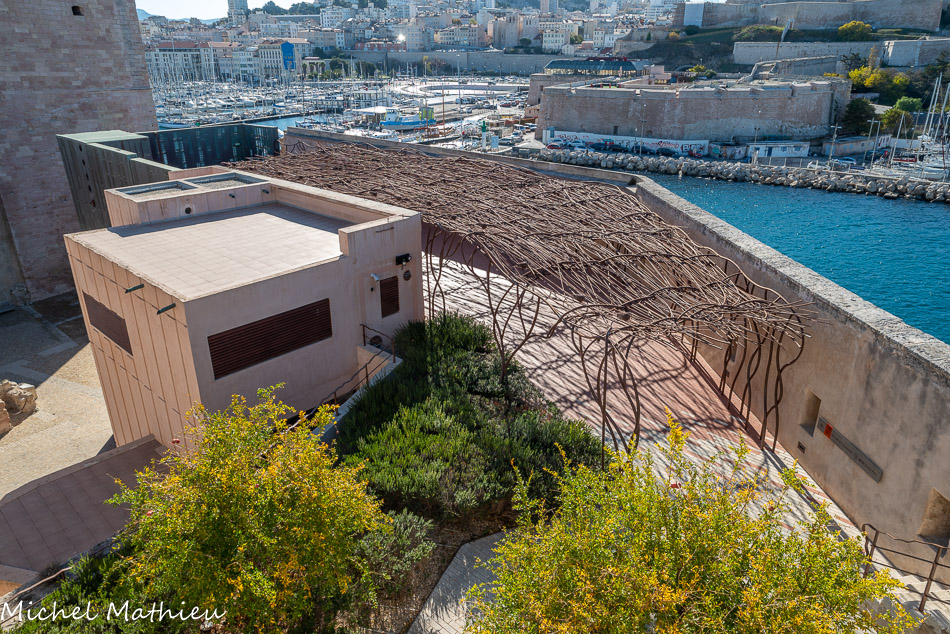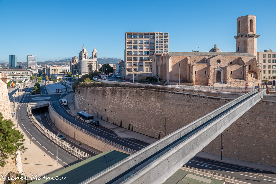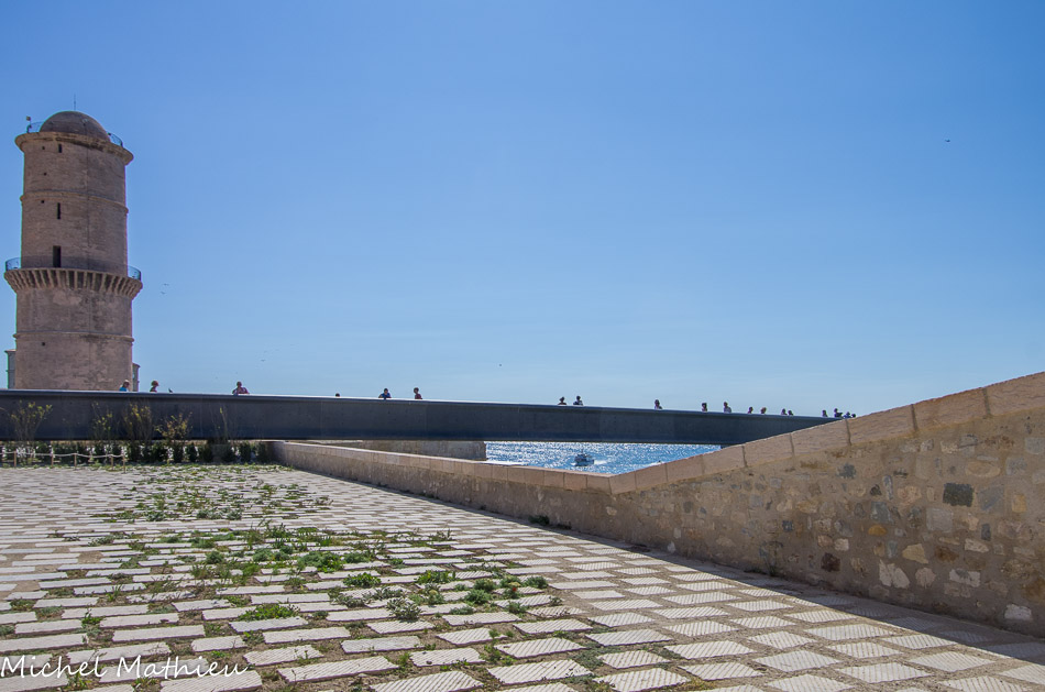 Une seconde passerelle relie le fort St Jean à l'église Saint-Laurent, dans le quartier du Panier.