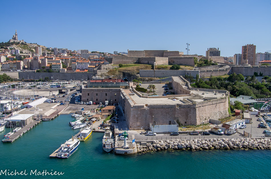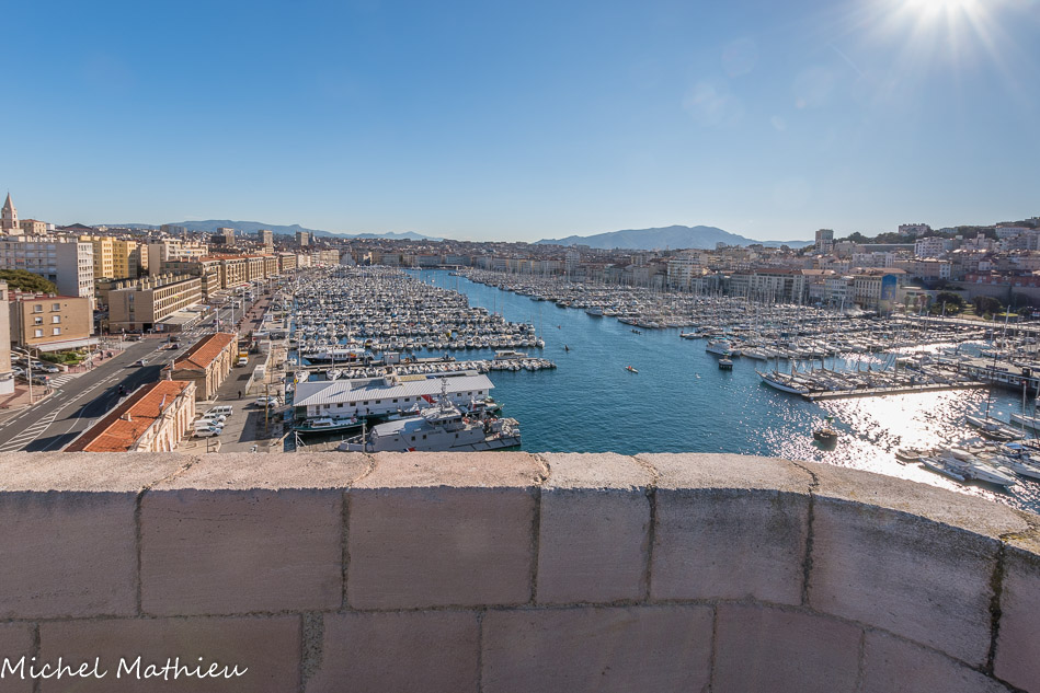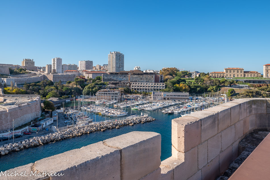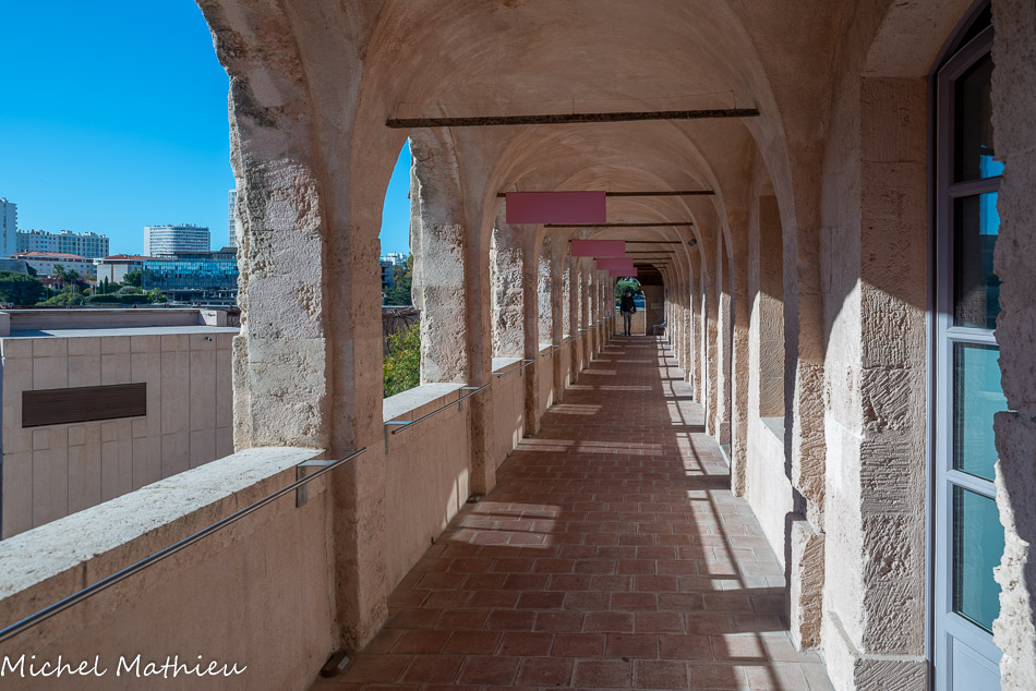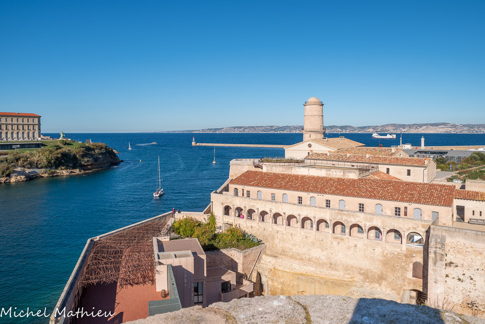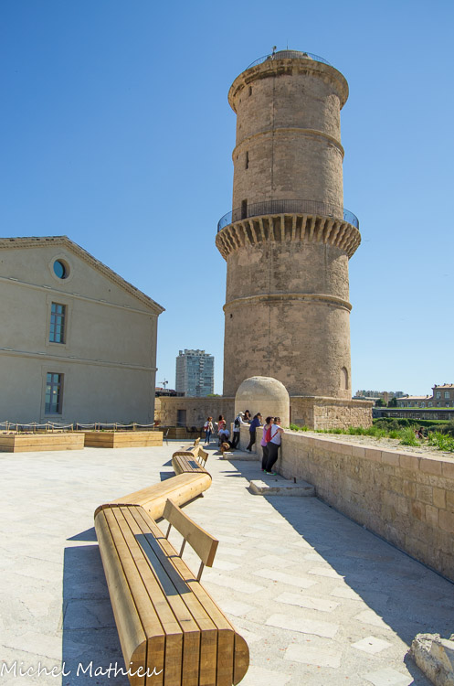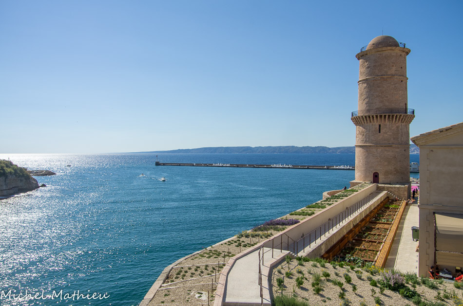 Une seconde passerelle relie le fort St Jean à l'église Saint-Laurent, dans le quartier du Panier.