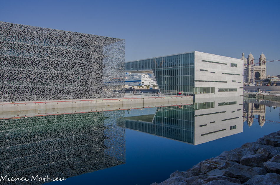 Entre la ville et la mer, sur l’ancien môle portuaire J4, le bâtiment est construit selon les plans de l’architecte Rudy Ricciotti, associé à Roland Carta. Ce bâtiment est relié au fort St Jean par une passerelle.