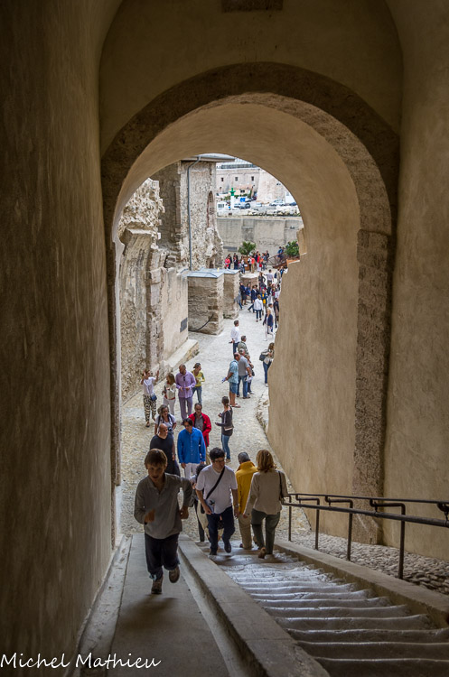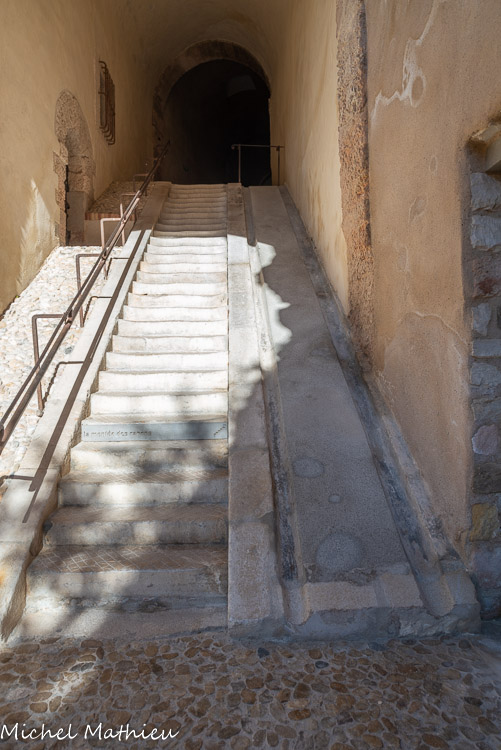 Galerie de la montée des canons. Les deux niveaux de la forteresse sont reliés par un tunnel qui permet le passage des canons depuis la partie basse pour les hisser à la partie haute.
