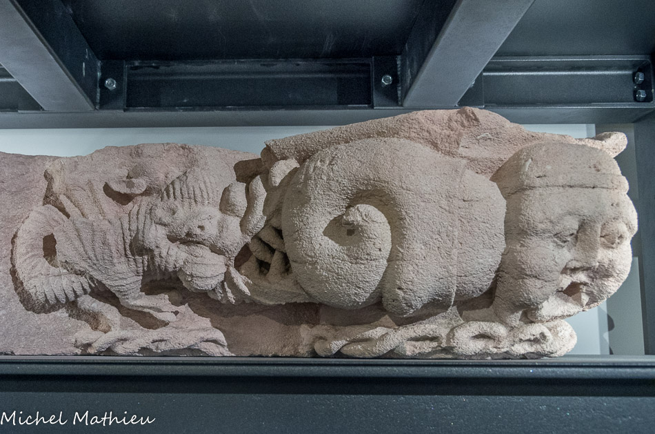Chapiteau représentant des animaux fantastiques.