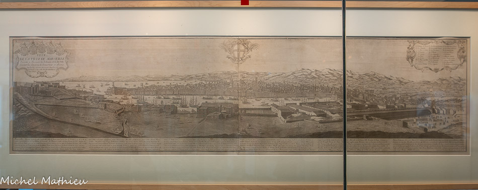 C'est une des première vue du site de Marseille et de ce qu'on nomme le Vieux-Port. À l'arrière-plan se reconnaît aisément le couvent de Saint-Victor, la colline de la Garde (dont le relief est largement accentué). A son sommet on distingue le poste de vigie, surmontée de la voile blanche et à son pied, l'anse du Pharo, ("Tête de More "). Au pied du tableau se situe la barque, qui selon la légende, est celle sur laquelle Marie Madeleine est arrivée à Marseille.d'une chapelle et de la tour de la vigie.