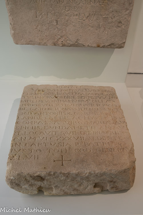 Pierre de fondation de l'église des Augustins 1611. Pierre calcaire.