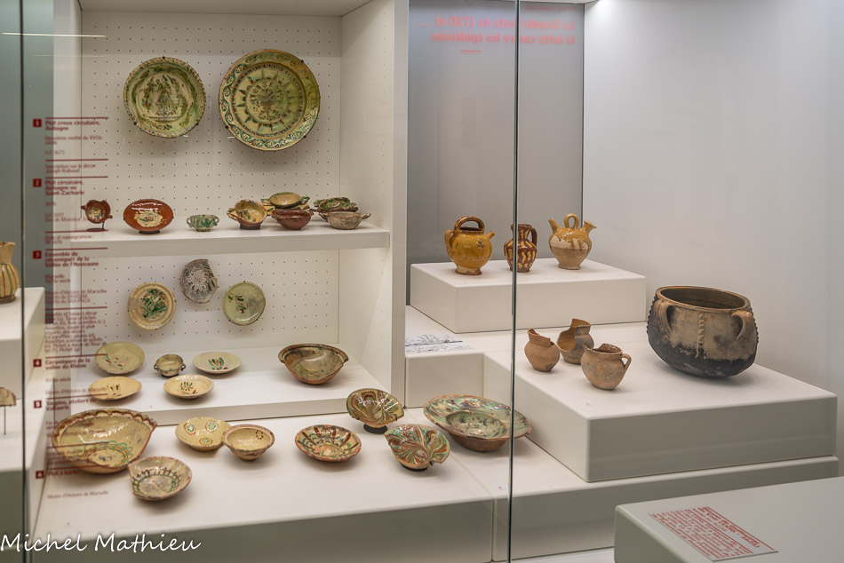 6. Taraillettes, céramiques de la vallée de l’Huveaune. Fouilles de la place Villeneuve – Bargemon. Troisième quart du XVIIe siècle. Pichets, vases, toupin, sifflet en forme de lapin.