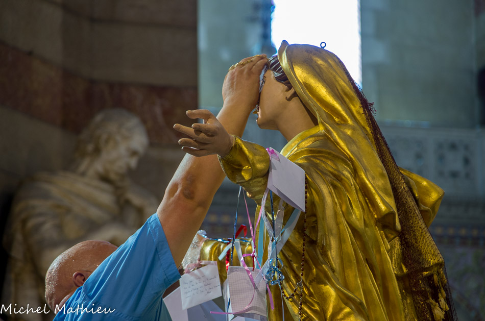 Des gens attachent des enveloppes à la Madone qui ne sont pas remplies de billets de 500 euros, mais d’intentions ou de photos pour recommander tel défunt, ou telle personne malade.