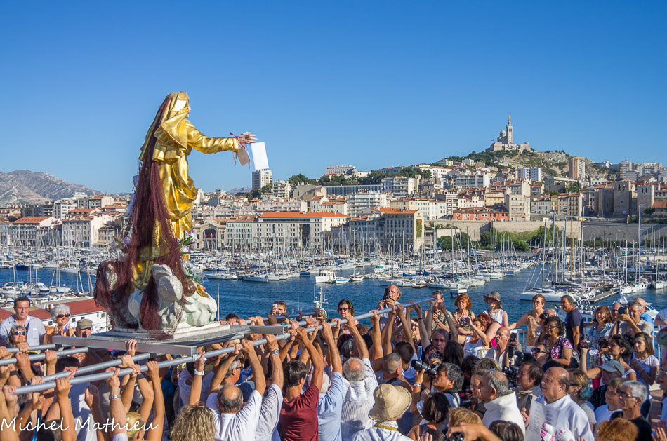 C'est sans doute la plus importante du midi de la France. Elle attire entre 6 et 7 mille personnes. Elle part de la Major à 17H pour emprunter les rues étroites du quartier du Panier de Marseille, le plus ancien de la ville. Cette procession trouve ses origines parmi les nombreux immigrants Napolitains qui sont arrivés à Marseille il y a un siècle.