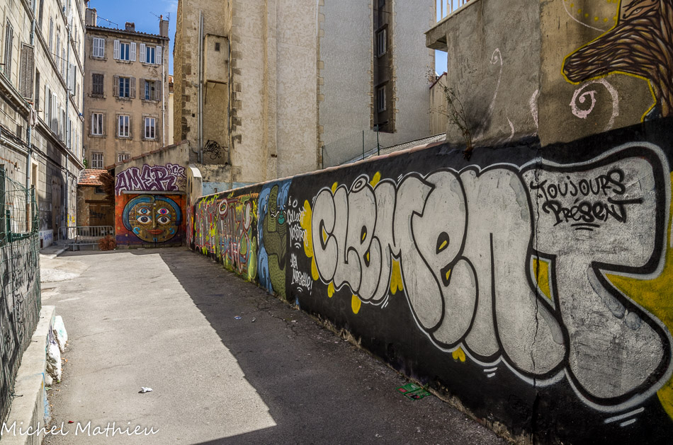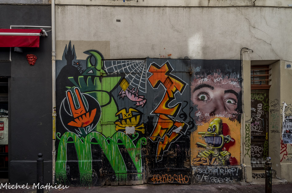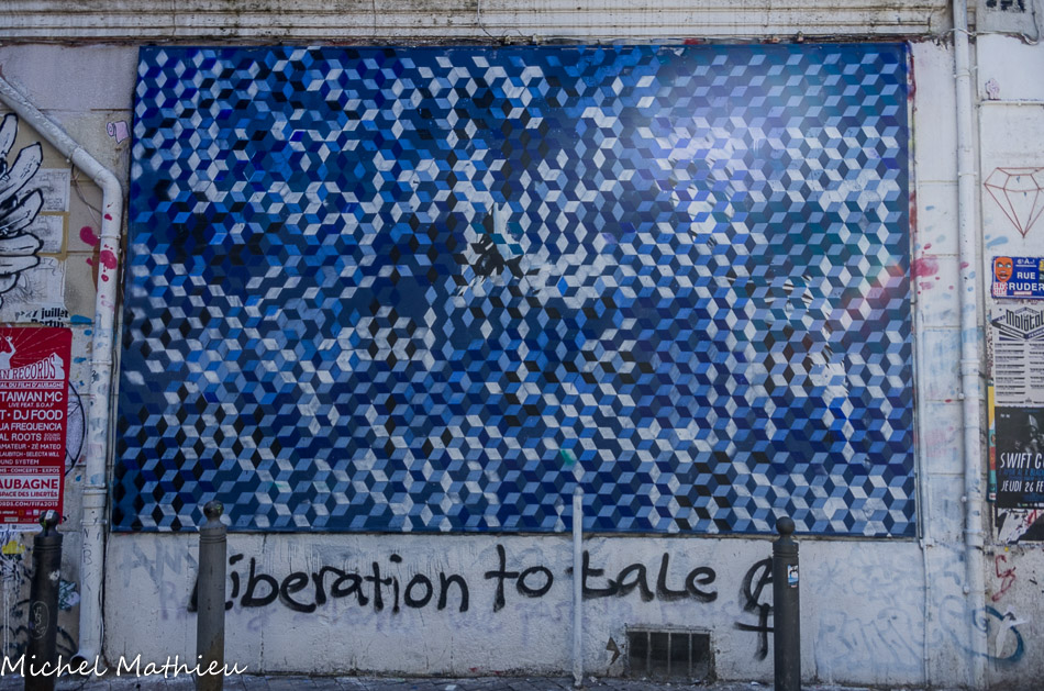 En 2014, sur le même mur autorisé, lors du festival de graph. A droite, le diamant de l’artiste féminin Ouch.