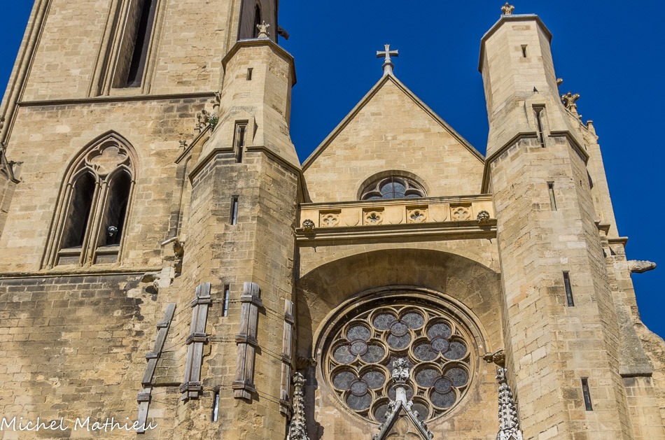 Elle a été construite au XVIIIe siècle à l'emplacement d'un hôpital, dénommé l'hôpital du Saint-Esprit1 géré au XIVe siècle par les frères hospitaliers de l'Ordre du Saint-Esprit (ou Ordre du Saint-Esprit), fondé à Montpellier vers 1197. L'intérieur est résolument moderne, les lignes sont épurées, les arcs sont en plein-cintres. Laurent Vallon joue énormément avec l'espace, créant de nombreuses illusions : les nefs latérales sont écrasées par la nef principale afin de donner une impression d’espace, et une corniche fait le tour de tout l’intérieur, constituant un liant unifiant les différents éléments de l’église en assurant une continuité.
