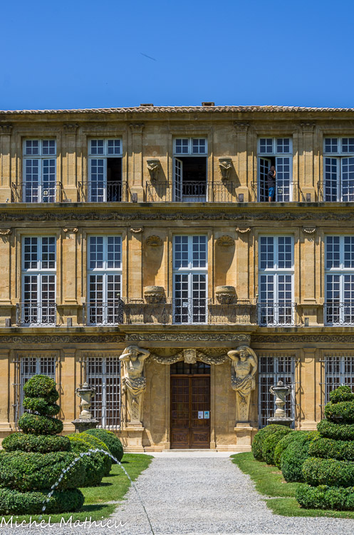 Pavillon noir, la Ville, les Thermes, salle des états de Provence, la cathédrale, hôtel de Châteaurenard, St-Jean-de-Malte, chapelle des Oblats, Pavillon Vendôme.