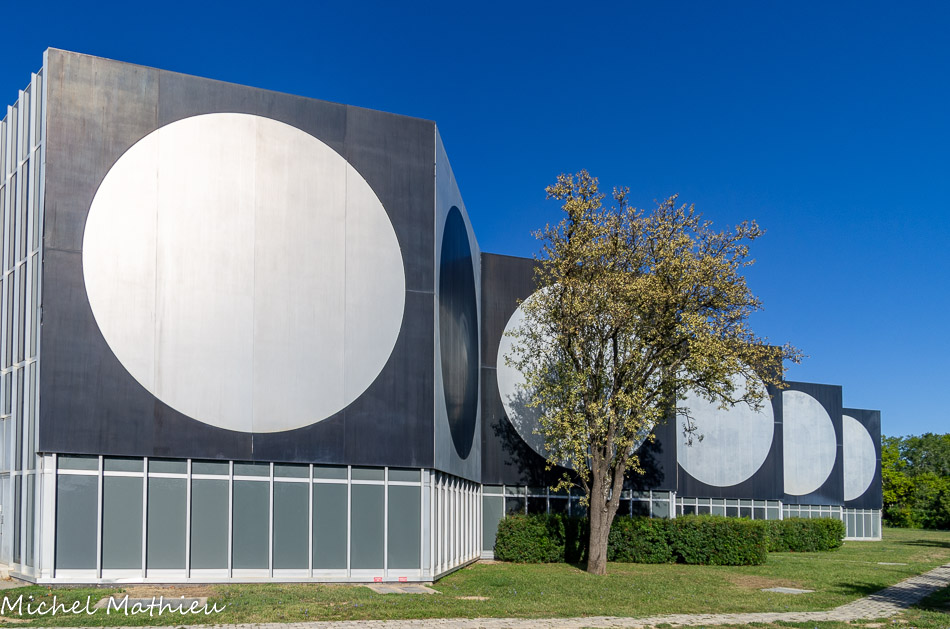 Les façades extérieures sont en aluminium anodisé, présentant en alternance un grand rond noir sur fond argent et un grand rond argent sur fond noir. D'architecture avant-gardiste, la Fondation est pensée comme une gigantesque sculpture lumino-cinétique où les animations optiques de la façade préfigurent les jeux cinétiques des 42 intégrations monumentales que l'on découvre à l'intérieur du bâtiment.