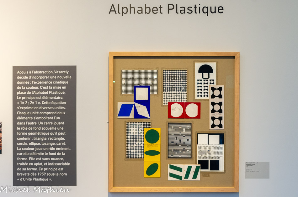 « Il est d’une richesse inépuisable, tout comme l'alphabet du langage, lequel avec ses vingt-six lettres, peut combiner une infinité de mots et véhiculer une multitude de messages. Ce principe permutationnel ouvre la voie à des analogies avec la théorie de la relativité restreinte d’Albert Einstein ainsi qu'à des variations de type algorithmique. Le Vasarely « visionnaire » se plaît en 1966 à rêver d’un ordinateur programmant et renouvelant des nuanciers de couleurs ; chaque version apparaîtrait sur l’écran de contrôle