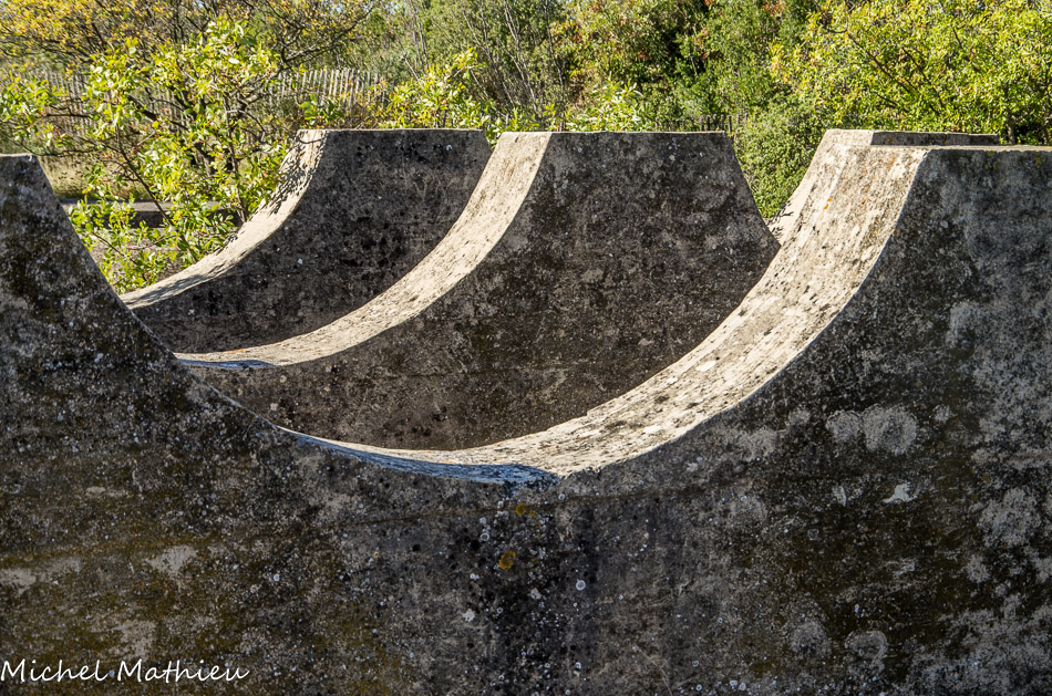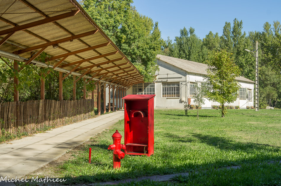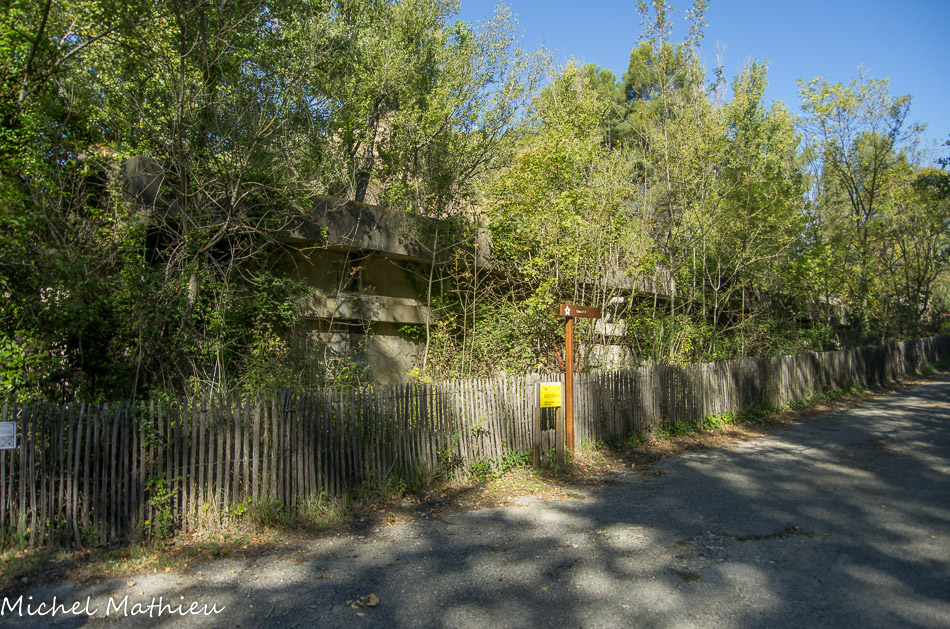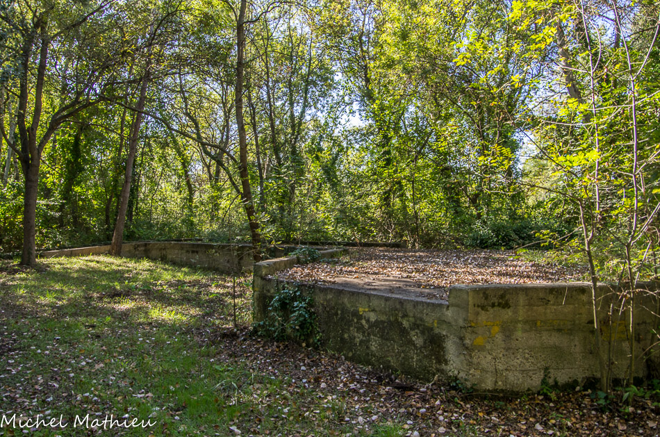 Il se nommait ES111 et servait de point d'embarquement pour les trains. Son inclinaison facilitait le chargement de poudre dans les wagons. Une fois chargés, les trains rejoignaient la gare de Miramas ou le port de Saint-Chamas, au moyen des voies dont vous voyez encore quelques vestiges ça et là dans la Poudrerie. La poudre était alors acheminée et vendue aux quatre coins du monde. En face, se trouvait l'atelier de réparation. Au bord de l'étang, se trouvait le dépôt de poudre noire qui a été démoli en 1980.