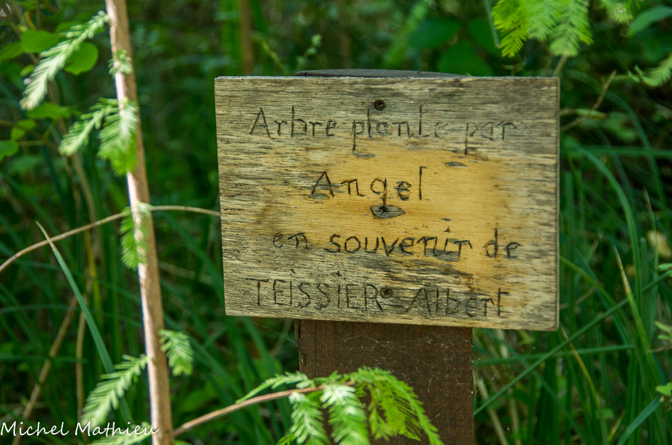 En bordure de cette allée des pancartes portent le nom de chaque enfant et celui du poudrier dont nous avons voulu perpétuer le souvenir.