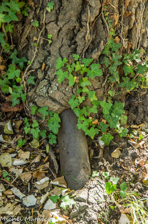 Le tube ressortait ici : l'arbre a recouvert le tube de son écorce.