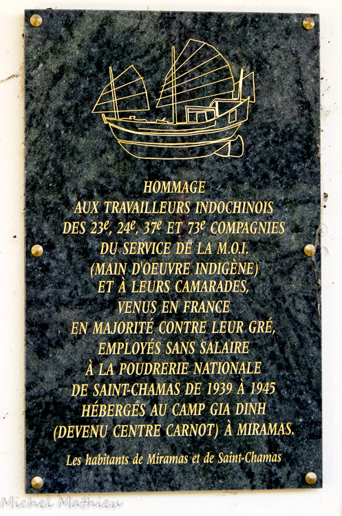 En 1939, à la veille de la guerre, l’État Français a décidé de réquisitionner des ressortissants indochinois afin de soutenir l’effort de guerre et d’assurer une main d’œuvre dans les usines d’armement et de munitions. 20 000 travailleurs Indochinois sont ainsi venus en France, regroupés en 72 compagnies ; 3 compagnies avaient été affectées à St-Chamas. Ces personnes ont travaillé dans des conditions de vie et de santé extrêmement précaires.