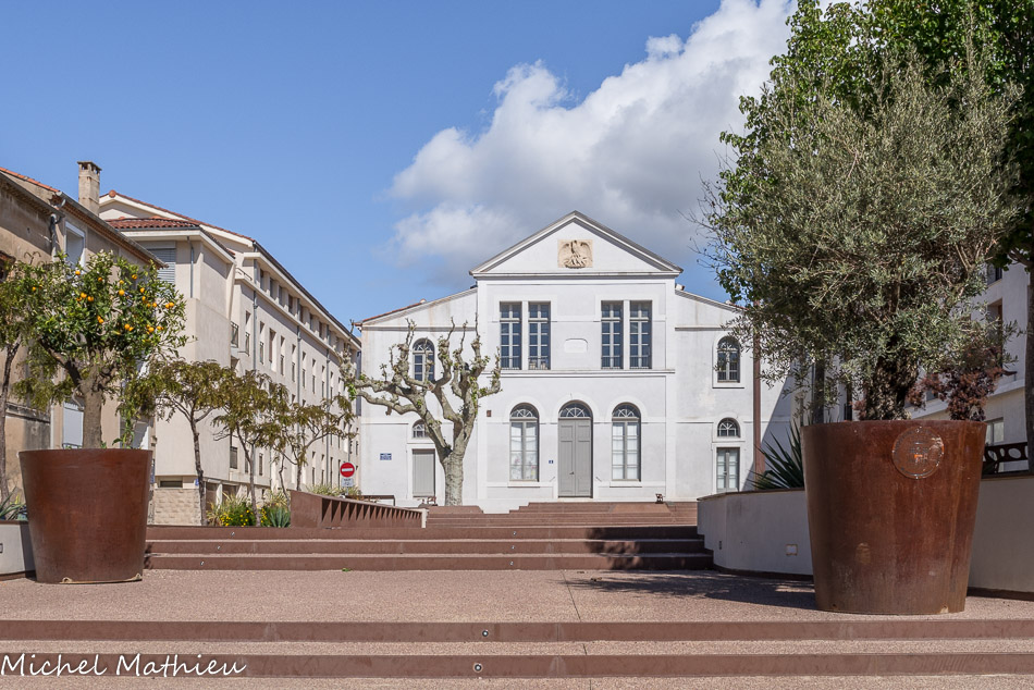 Cette place est plus communément appelée Place du Théâtre grâce au théâtre qui siège à cet endroit. le bâtiment a hébergé les pénitents blancs et un cinéma en 1890.