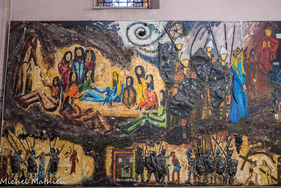 Le Chemin de Croix fait en tissus est l’œuvre de Madame Lorosière qui l’a réalisé et fait don en 1976. Les textes sont de Paul Claudel.