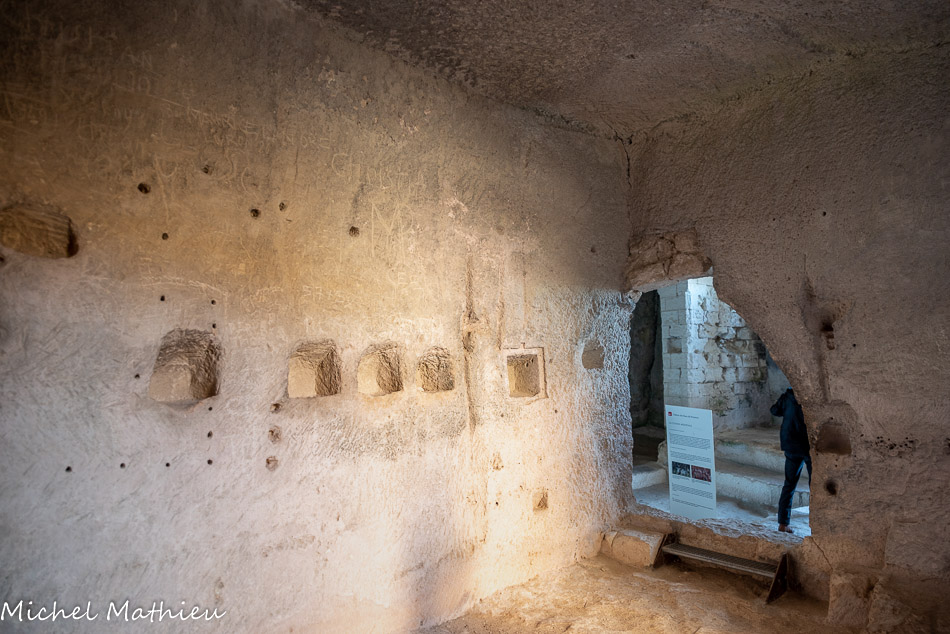Habitats troglodytes. Les nombreuses niches étaient utilisées pour le rangement, les cuves pour conserver l’eau et l'huile d'olive, ou les viandes dans du sel.