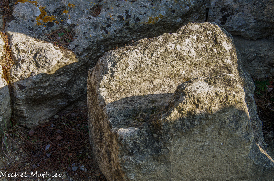 Blocs moulurés d'un monument en grand appareil, IIe av J.C. Ce sont sans doute des éléments de corniche.