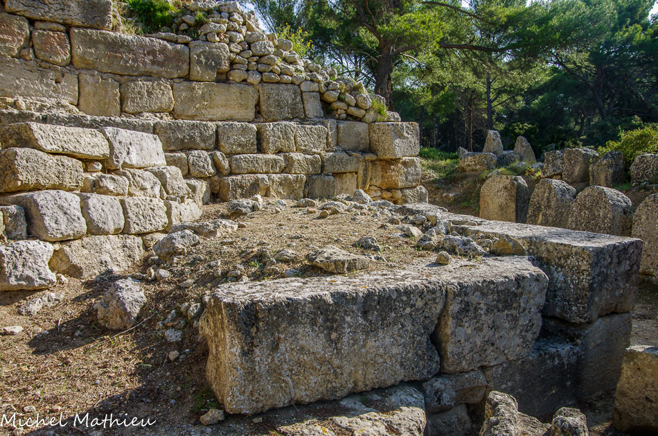 Les merlons issus du crénelage du rempart grec. Ce dernier était une muraille de prestige, de 6 m de haut, surmontée des merlons.