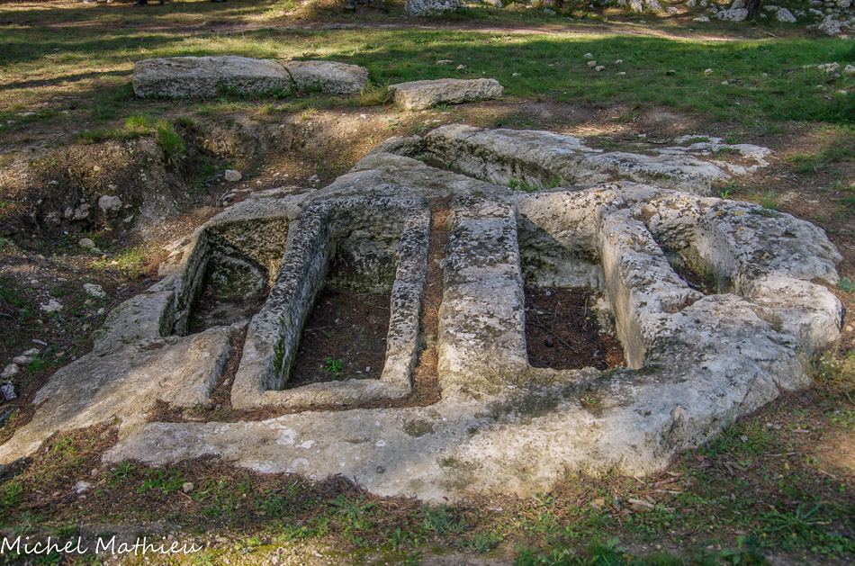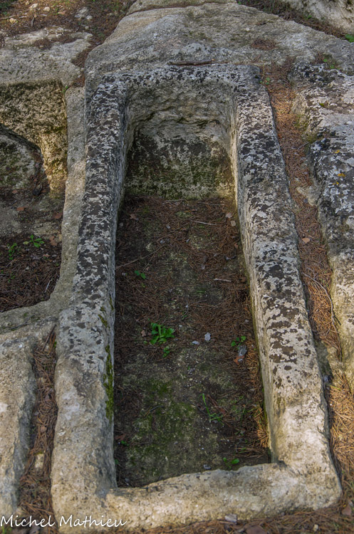Tombes rupestres d'époque paléochrétienne (Ve-VIIIe s. apr. J.-C.). Parfois groupées en petits ensembles familiaux, elles ont été creusées à même le roc et recouvertes de pierres plates. Par leurs caractéristiques et par quelques objets mis au jour, ces sépultures appartiennent à la période wisigothique (Ve-VIe s. apr. J.-C.)