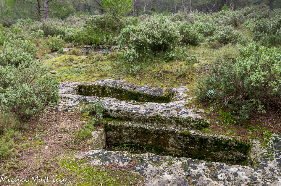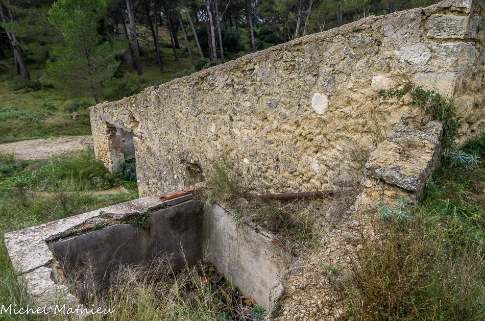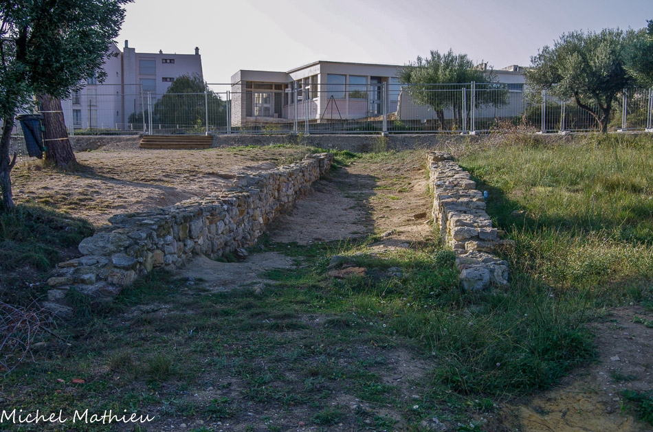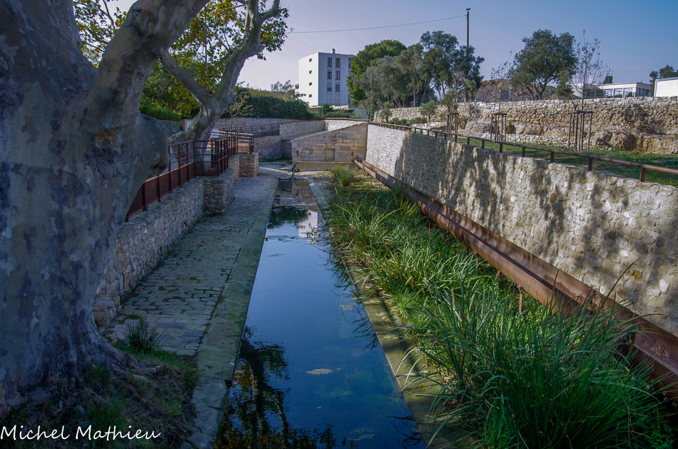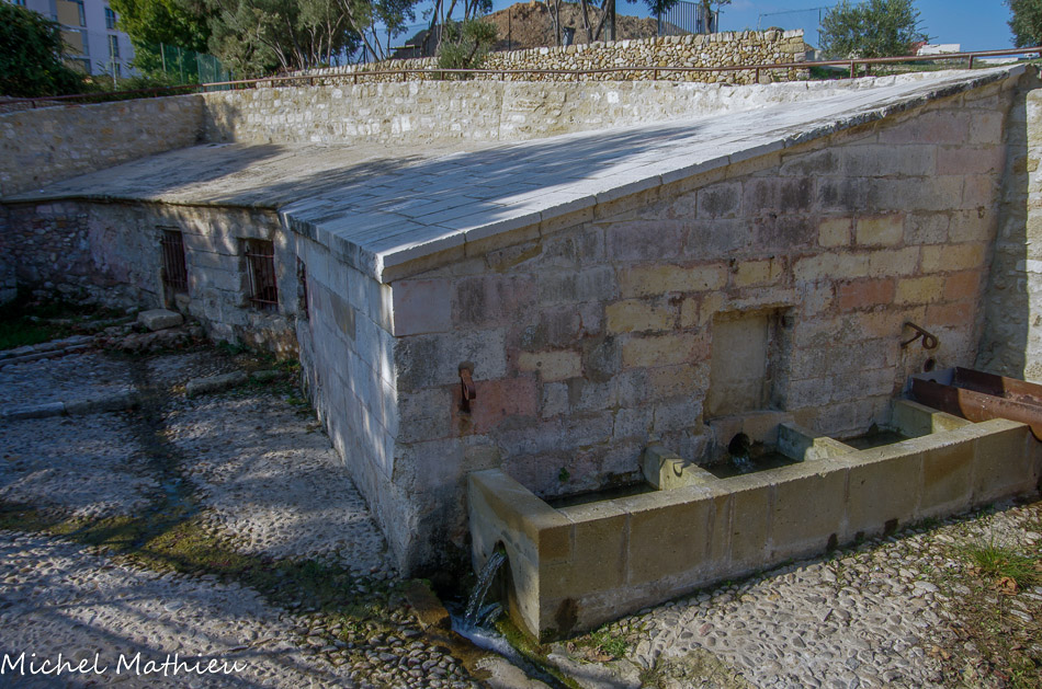 Le lavoir. Dans la partie sud du site, les fouilles ont remis au jour les vestiges en partie masqués de plusieurs bâtiments et ouvrages qui, jusqu'à la fin du XIXe siècle, assuraient via un aqueduc enterré de plus d'1 km, l'essentiel de l'approvisionnement en eau du centre-ville de Martigues.
